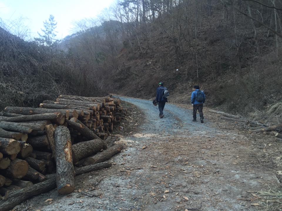 산은 가파르고 비탈은 험한데 베어 놓은 나무는 아직도 사방에 널려있다.
